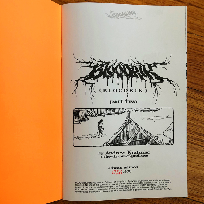 Bloodrik is angry, starving, and stupid. He enters into an unfamiliar forest to hunt for food but his arrogance and ego lead him into trouble. The conclusion to the Bloodrik story! Part 2 of 2. (5.25" x 8" 34 pages, black and white) -includes SKETCHBOOK section!