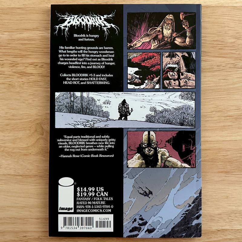 Collects BLOODRIK #1-3 and includes the short stories: HOLD FAST, HEAD ROT, and SHATTERWING.