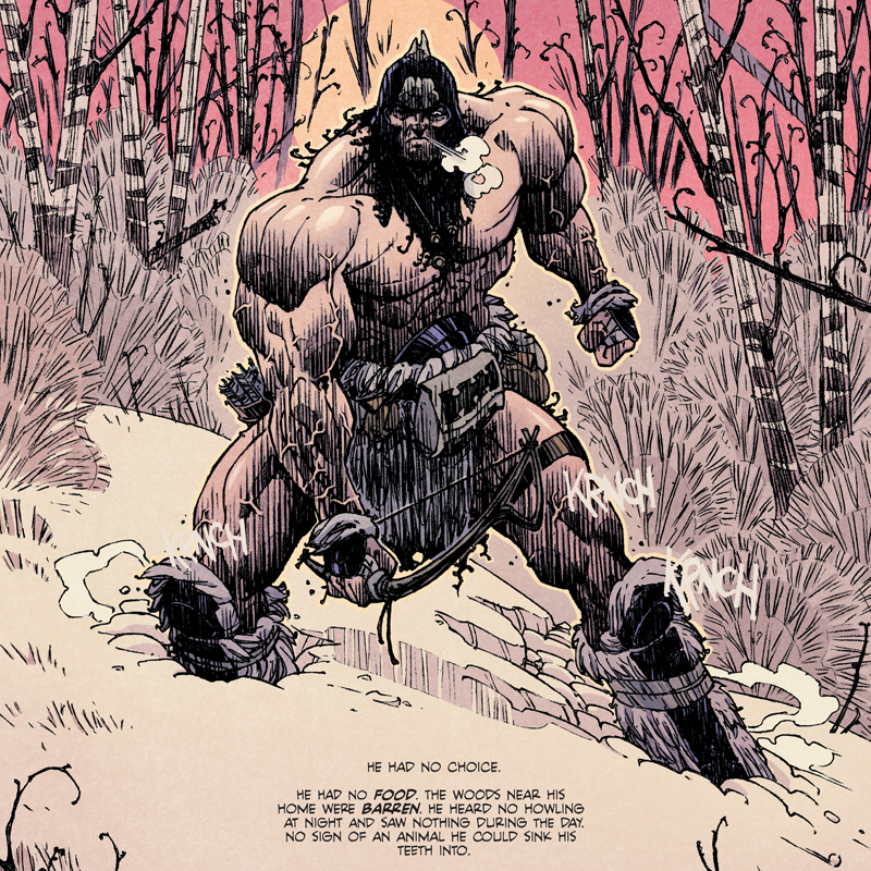 "BLOODRIK is angry, confused and starving. Finding nothing but failure in his usual hunting grounds, the woodsman stomps his way into unfamiliar territory in an attempt to feed his stomach and heal his wounded ego. What he finds there will lead him on a journey of madness, violence, fire and BLOOD!"